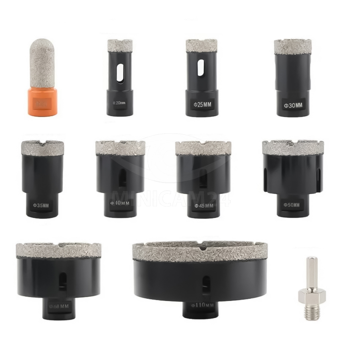 Набор алмазных коронок по керамограниту Doriru 11 шт, 20-110 мм